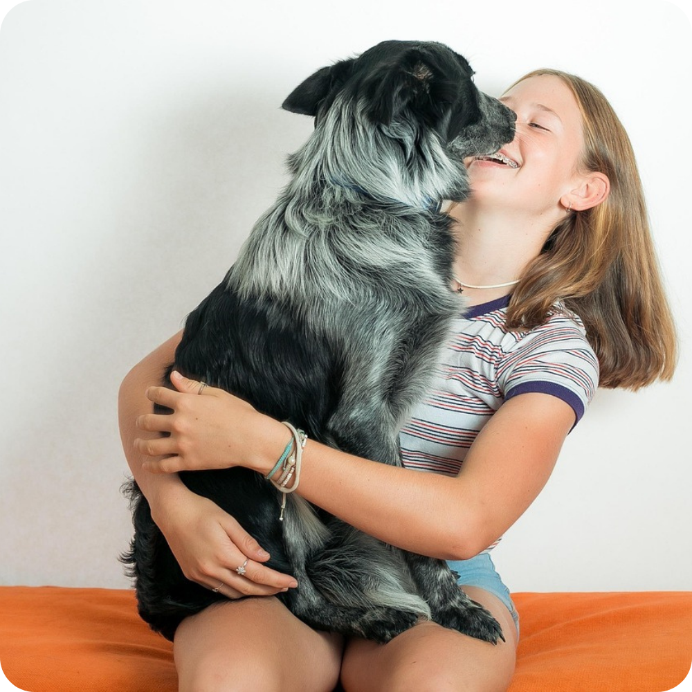 Nuestro equipo canino participa como apoyo terapéutico, promoviendo el vínculo, la regulación emocional y el bienestar durante el proceso.